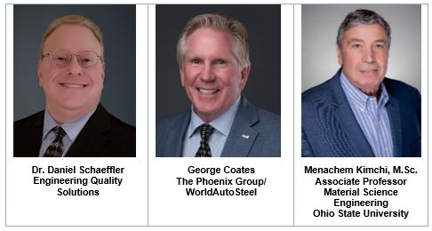 Forming experts Dr. Daniel Schaeffler, Engineering Quality Solutions, Inc., and George Coates, The Phoenix Group, with well-known joining expert, Menachem Kimchi, M.Sc., Material Science Engineering, Ohio State University, will spend the next year and a half interacting with our membership around the world to tap their expertise for new and best practices. Our membership includes steel industry subject matter experts who collaborate regularly with global automotive manufacturers.